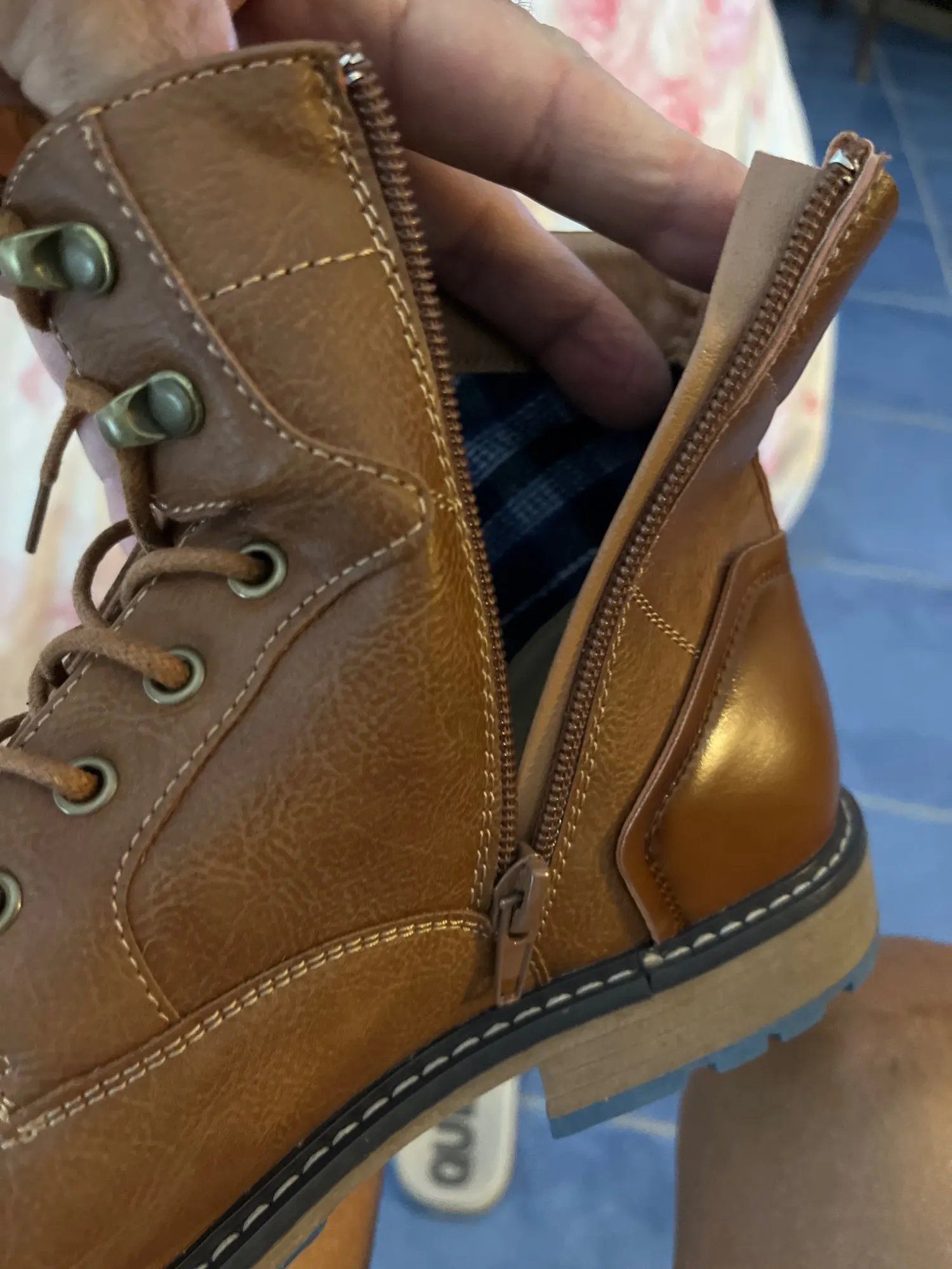 Alvin Legros These are not leather - but they are very well made. I don't think this is a deliberate deception as they are listed in the specs as "synthetic". They are however really well made. Curious to see how they hold up. Pretty comfortable too. Roughly similar to sketchers in build quality.